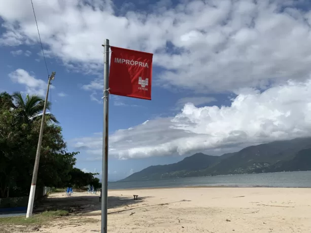 A Cetesb realiza análises periódicas da água do mar para avaliar a balneabilidade das praias, levando em conta a presença de bactérias que indicam contaminação por esgoto. A recomendação é que banhistas evitem o contato com a água em locais classificados como impróprios, principalmente após períodos de chuva intensa.